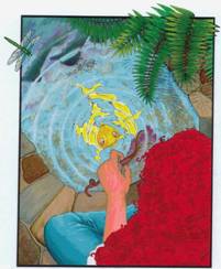 Ember dropped the rest of the squiggling worms into the pond and felt in her pocket for a penny. She held her breath, and closed her eyes to concentrate. “I wish, I wish I were normal, not weird!” She flipped the coin into the air. PLOP! It fell in the pond. Ember opened her eyes. The dragonflies were gone. At least she wouldn’t have to listen to them. Maybe the wish worked.